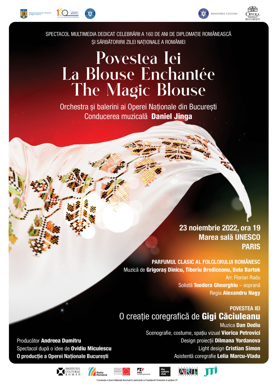 Opera Naţională Bucureşti, în parteneriat cu Delegaţia permanentă a României pe lângă UNESCO, prezintă miercuri, 23 noiembrie, ora 19:00, la Sala Mare a UNESCO din Paris, „Povestea Iei”, un spectacol multimedia complex și original dedicat aniversării a 160 de ani de Diplomație românească precum și sărbătoririi Zilei Naționale a României.