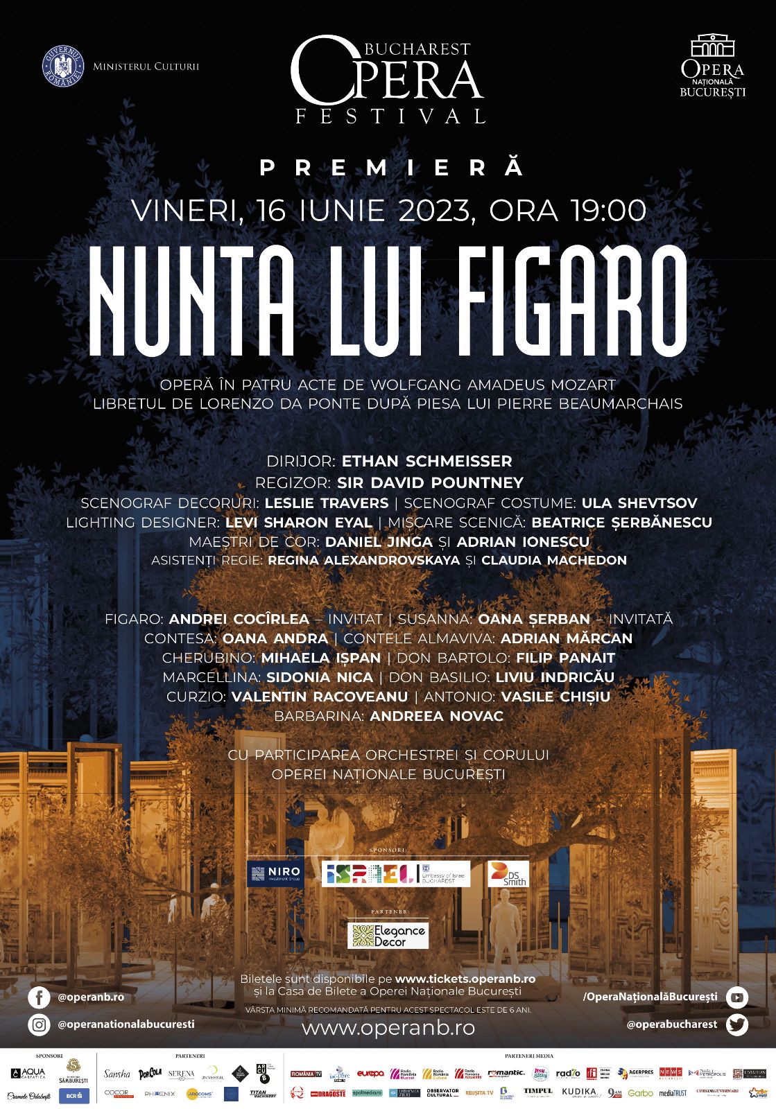 Opera Națională București prezintă premiera spectacolului de operă „Nunta lui Figaro” de W.A. Mozart, în regia maestrului Sir David Pountney. Evenimentul va avea loc pe data de 16 iunie, începând cu ora 19:00, și va marca deschiderea celei de-a doua ediții a Bucharest Opera Festival.