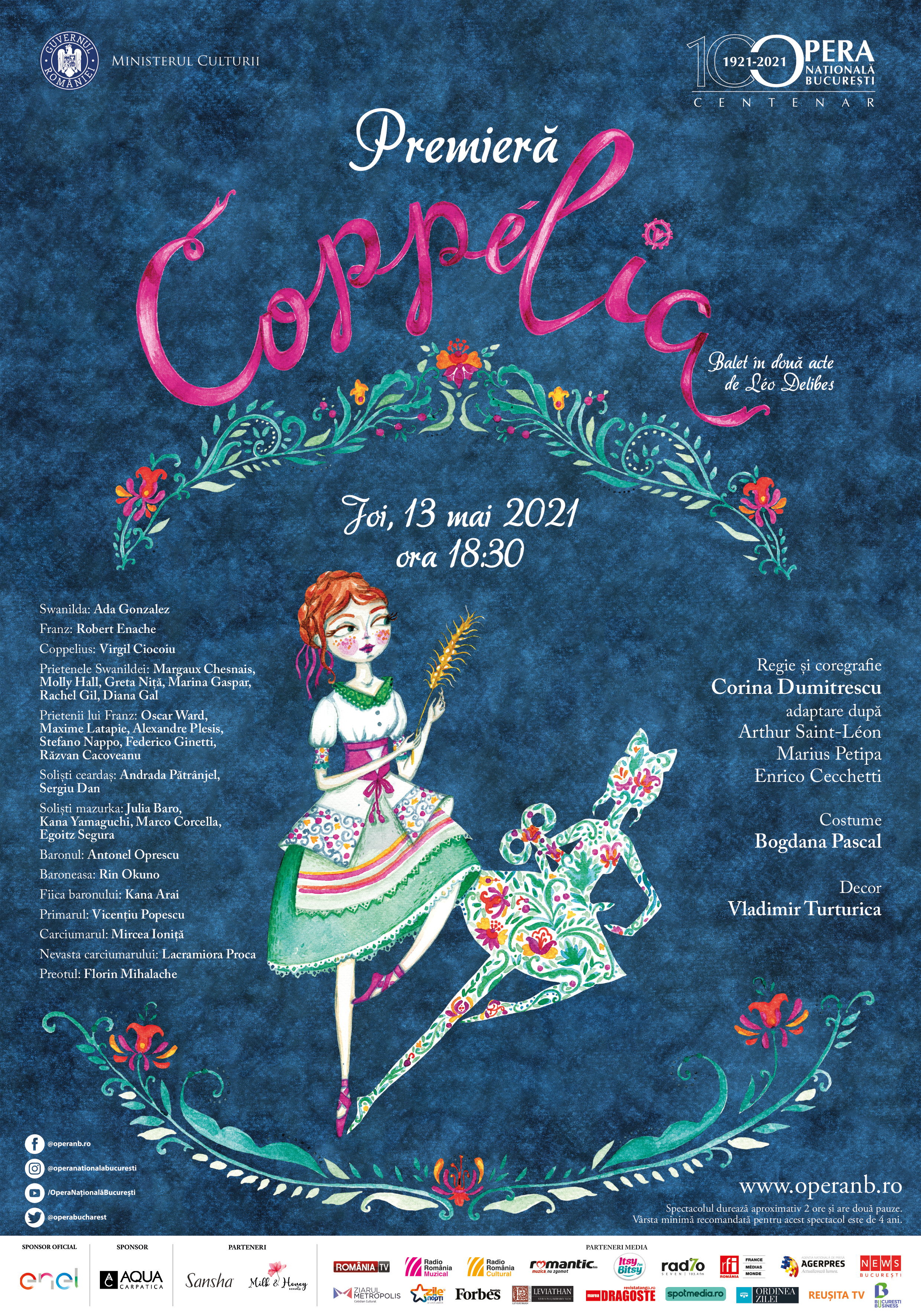 Premiera spectacolului de balet „Coppélia” de Léo Delibes are loc joi, de la ora 18.30, cu public, la Opera Naţională Bucureşti.