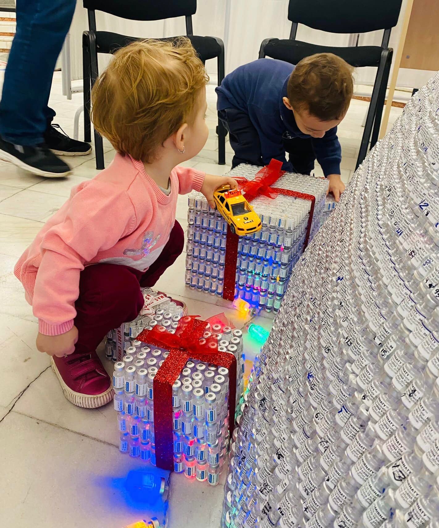 Cutiile de cadouri și căsuța sunt realizate din doze Johnson&Johnson.