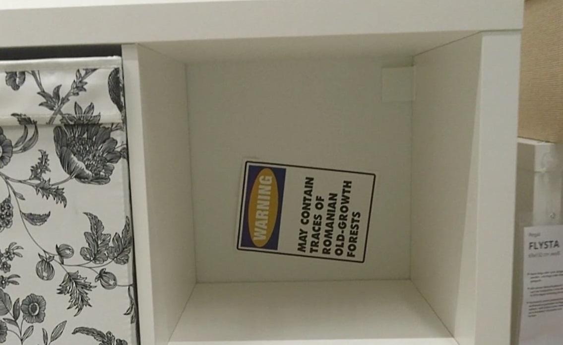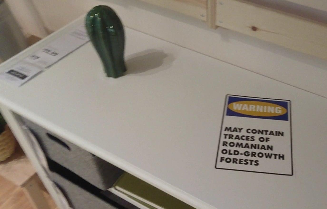 Acestea au lipit pe produsele dintr-un magazin IKEA etichete cu mesajul „Atenţie! Poate conţine urme de lemn de la păduri seculare din România”.