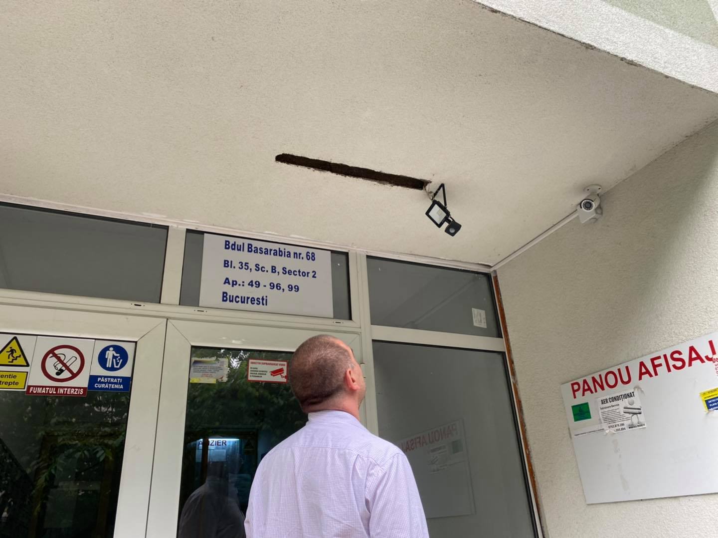 ”Dacă tot m-a prins ploaia pe teren, m-am dus să văd și o recepție de la un bloc reabilitat. Infiltrații, tâmplărie nefuncțională, finisaje proaste – asta am găsit la fața locului.