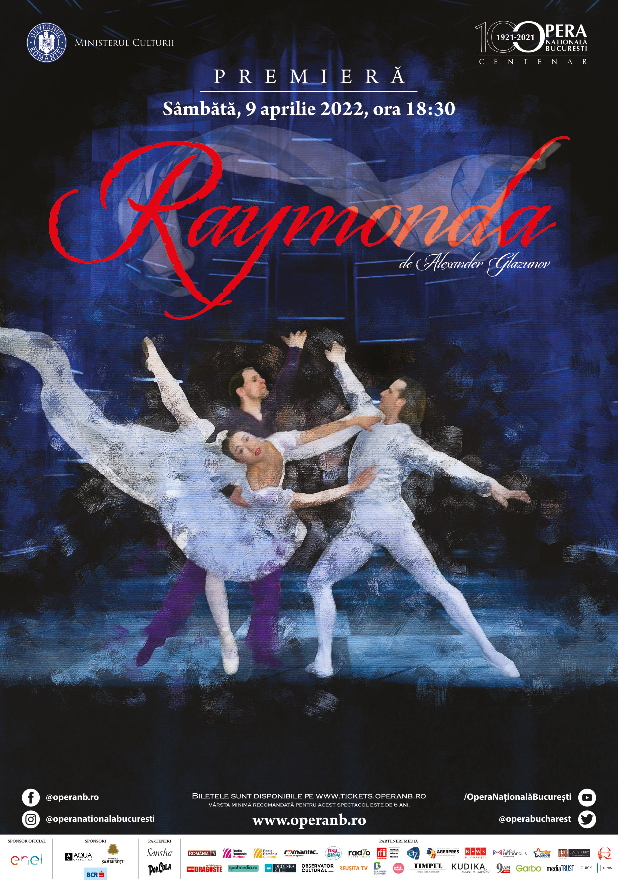 Opera Națională București prezintă sâmbătă, 9 aprilie 2022, începând cu ora 18:30, premiera de balet „Raymonda”, de Alexander Glazunov, spectacol montat pentru prima dată în istoria centenară a instituției.