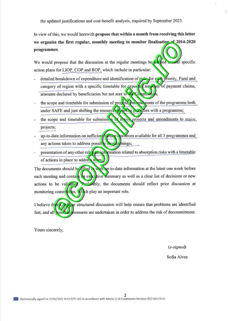 În cadrul documentului se mai prezintă și alte aspecte îngrijorătoare legate de ciclul financiar 2014-2020, pe care le puteți observa notate de Comisia Europeană în scrisoarea către ministrul Boloș, redată integral.