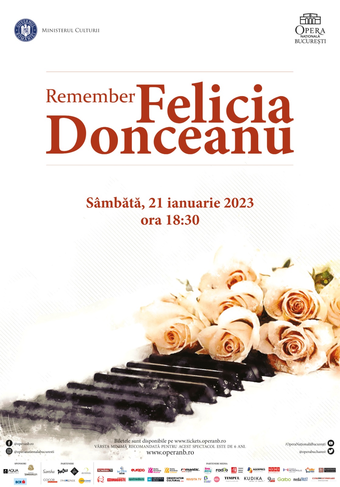 Sâmbătă, 21 ianuarie, ora 18:30, Opera Națională București propune o seară de lieduri „Remember Felicia Donceanu”.