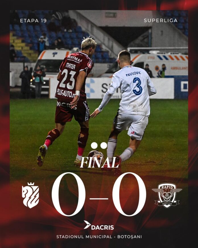 FC Botoşani a terminat la egalitate cu Rapid Bucureşti, 0-0, luni seara, pe teren propriu, în ultimul meci din etapa a 19-a a Superligii de fotbal, între primele două clasate. Liderul Rapid a ratat o ocazie antologică (20), prin Claudiu Petrila, care a trimis pe lângă poarta goală. Oaspeţii au mai avut o ocazie bună, […]