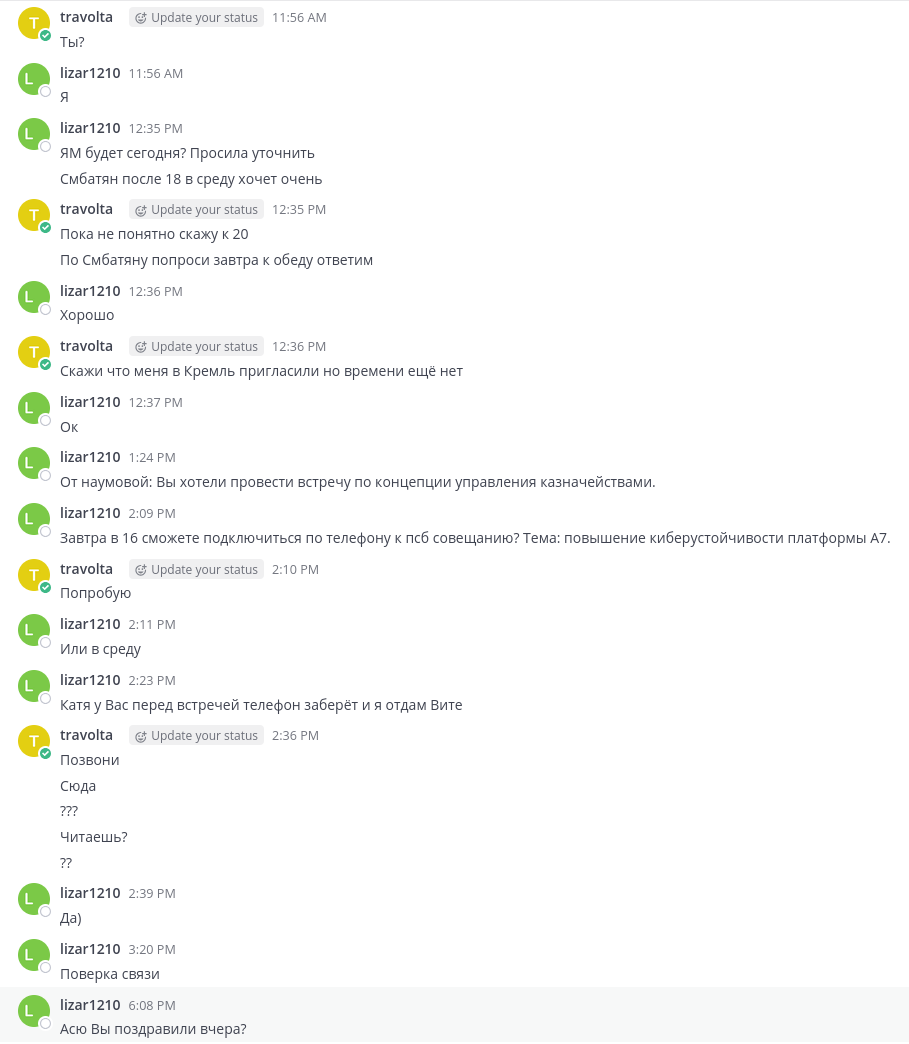 Potrivit discuțiilor interne, membrii „Evrazia” utilizează pseudonime. De exemplu, Ilan Șor ar fi folosit numele de „travolta”.