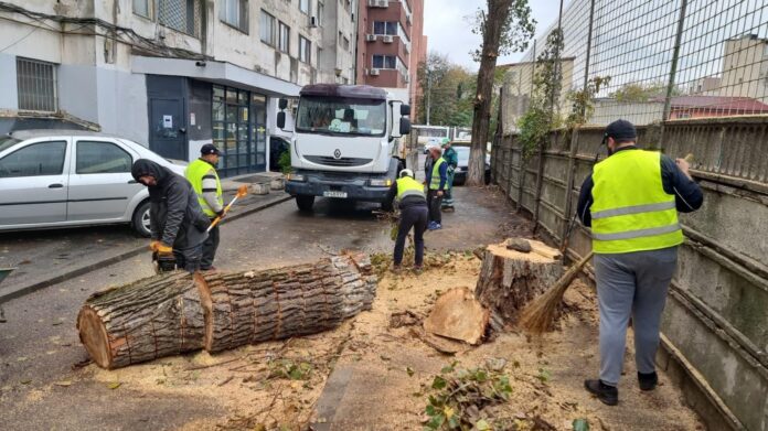 • De asemenea, au acționat pentru extragerea cioatelor și igienizarea spațiilor verzi afectate de tăieri anterioare.