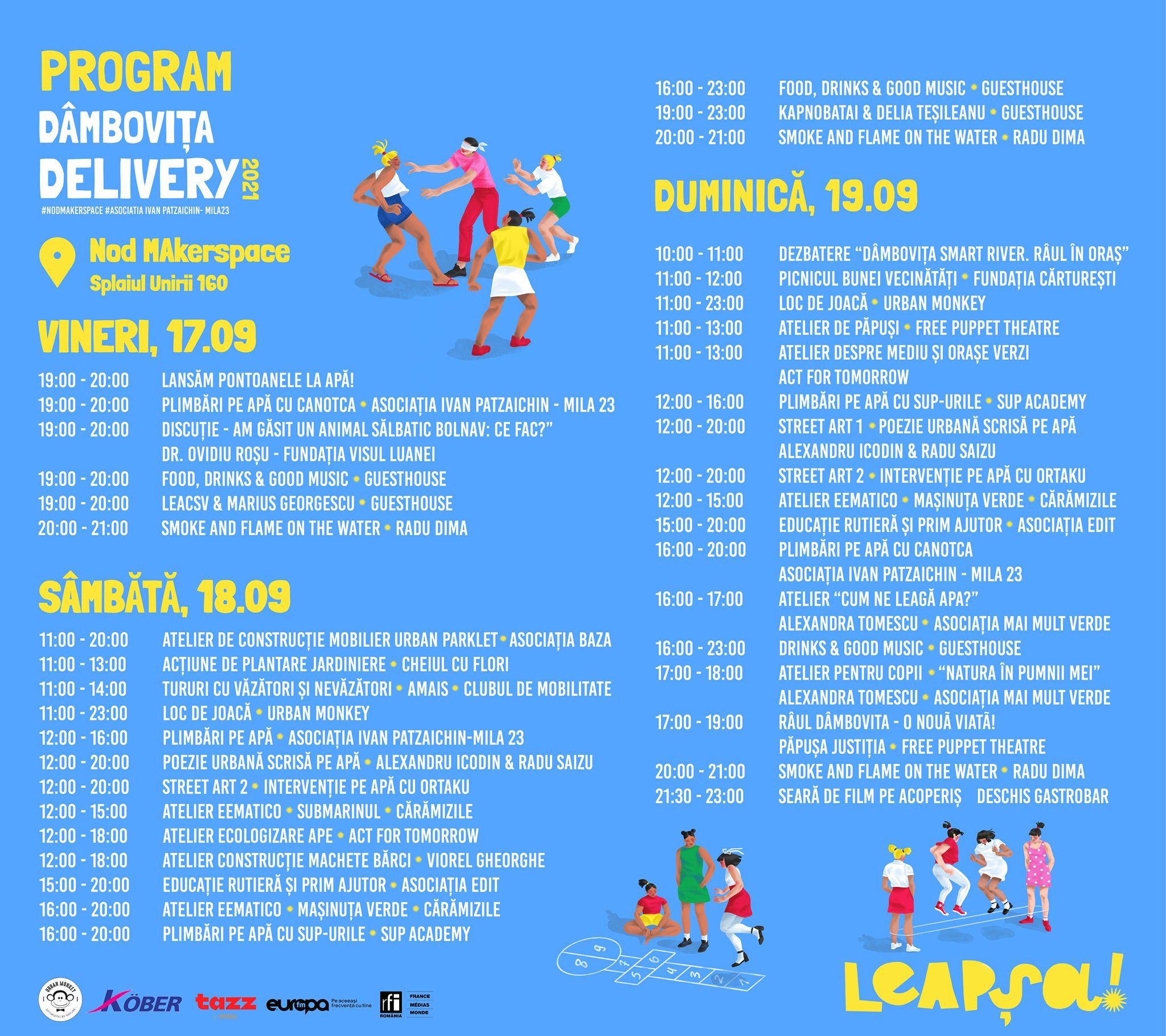 „Anul acesta Street Delivery îşi ia haina jocului nostru din copilărie, Leapşa. Între 17 şi 19 septembrie se copilăreşte tot oraşul, cu jocuri şi evenimente ludic-serioase împrăştiate din Drumul Taberei până la Timpuri Noi şi conectate de necesitatea iminentă de oraş al pietonului, oraş prietenos şi trăibil. (…) Mai degrabă decât un moment de consum, aceste trei zile vor fi un moment generator, care să ne inspire atât la nivel individual, cât şi la nivel colectiv spre iniţiative şi idei pentru transformarea urbană a Bucureştiului. Un oraş mai accesibil pentru copii e un oraş mai accesibil pentru toţi”, au transmis organizatorii, într-un comunicat.