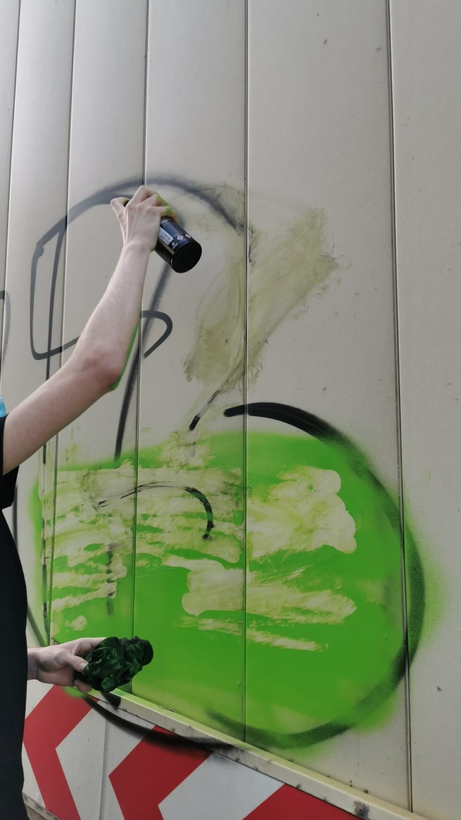 Vineri seară, D.A.C. a fost surprins de un agent al Serviciului Circulație Rutieră din cadrul D.G.P.L.C.M.B. în timp ce desena, împreună cu un prieten de-ai săi, cu un spray, pe pereții Pasajului Piața Victoriei. Aflat în exercitarea atribuțiilor de serviciu, polițistul local a observat cum cei doi bărbați – coborâți pe partea carosabilă – inscripționau cu vopsea verde un mesaj pe zidul interior.