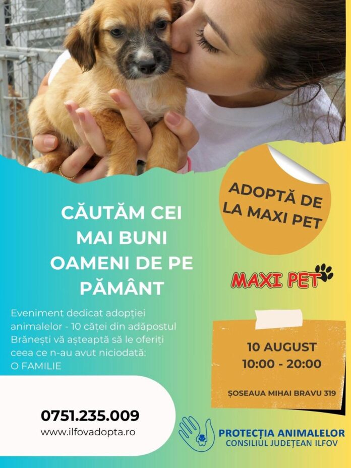 Consiliul Județean Ilfov, prin Direcția pentru Protecția Animalelor, în parteneriat cu Maxi Pet, organizează sâmbătă, 10 august 2025, un târg de adopții dedicat iubitorilor de animale.