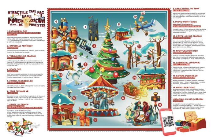 Programul include patinoar, carusel, ateliere tematice, proiecții de filme, spectacole, campanii umanitare și întâlniri cu Moș Crăciun. Evenimentul se desfășoară în fiecare vineri, între orele 16:00 și 21:00, iar sâmbătă și duminică între 10:00 și 21:00.