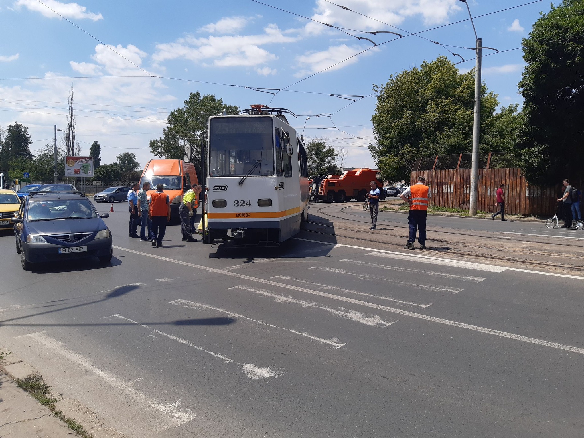 Circulația tramvaielor 25 și 47, pe Șoseaua Progresul, este blocată după ce o garnitură a deraiat. Tramvaiul care a ieșit de pe șine circula pe linia 25.
