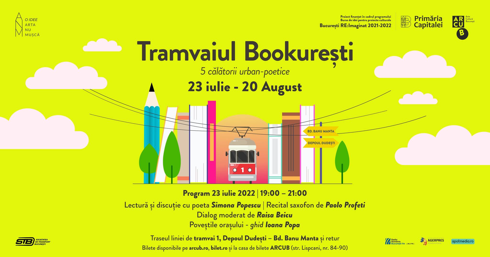 „Tramvaiul Bookureşti”, un program iniţiat de Asociaţia „Arta nu muşcă”, le propune bucureştenilor cinci călătorii urban-poetice cu tramvaiul de epocă (pe linia 1) în fiecare sâmbătă din perioada 23 iulie – 20 august.