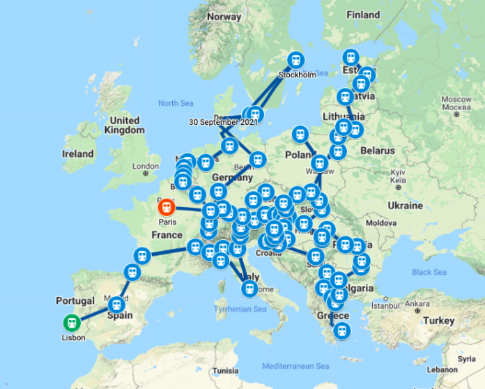Traseul va lega simbolic președințiile portugheze, slovene și franceze ale Consiliului UE, ca parte a Anului European al Căii Ferate 2021.
