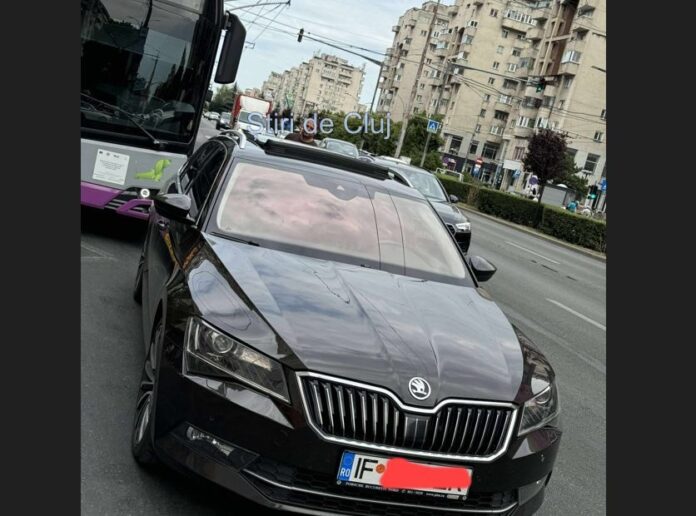 O limuzină Skoda cu numere de Ilfov a blocat un troleibuz în stația Crinului din cartierul Mărăști, Cluj-Napoca. Șoferul tupeist și-a lăsat mașina în așa fel încât troleibuzul nu a mai putut trece și a plecat să-și rezolve cumpărăturile sau poate alte treburi pe care le avea, potrivit stiridecluj.ro.