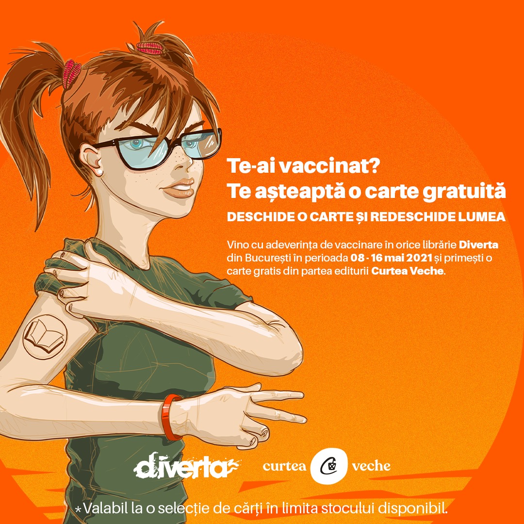 Lanțul de librării Diverta a anunțat că până pe 16 mai persoanele care prezintă adeverința de vaccinare primesc o carte gratuită. Oferta se adresează și celor care au primit doar prima doză de vaccin, mai spune compania.