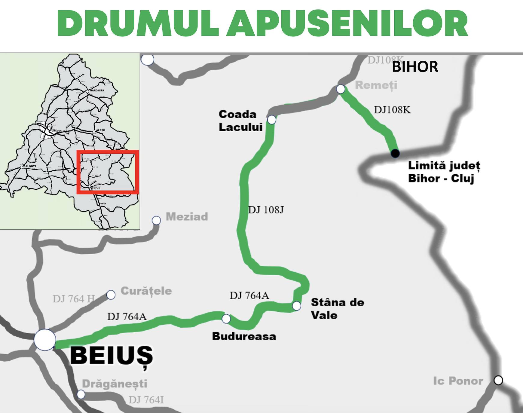 „Acest drum face legătura între Defileul Crişului Repede, o zonă turistică importantă a judeţului Bihor, şi Ţara Beiuşului, zona Munţilor Apuseni, punând în valoare importante obiective turistice de pe traseu: de la Stâna de vale cu Izvorul Minunilor, la Cascada Vălul Miresei, Cascada Iadolina, zona Coada Lacului cu meleagurile Remeţi, în plină dezvoltare şi Defileul Crişului Repede cu Vadu Crişului, Şuncuiuş, Bratca, Bulz.