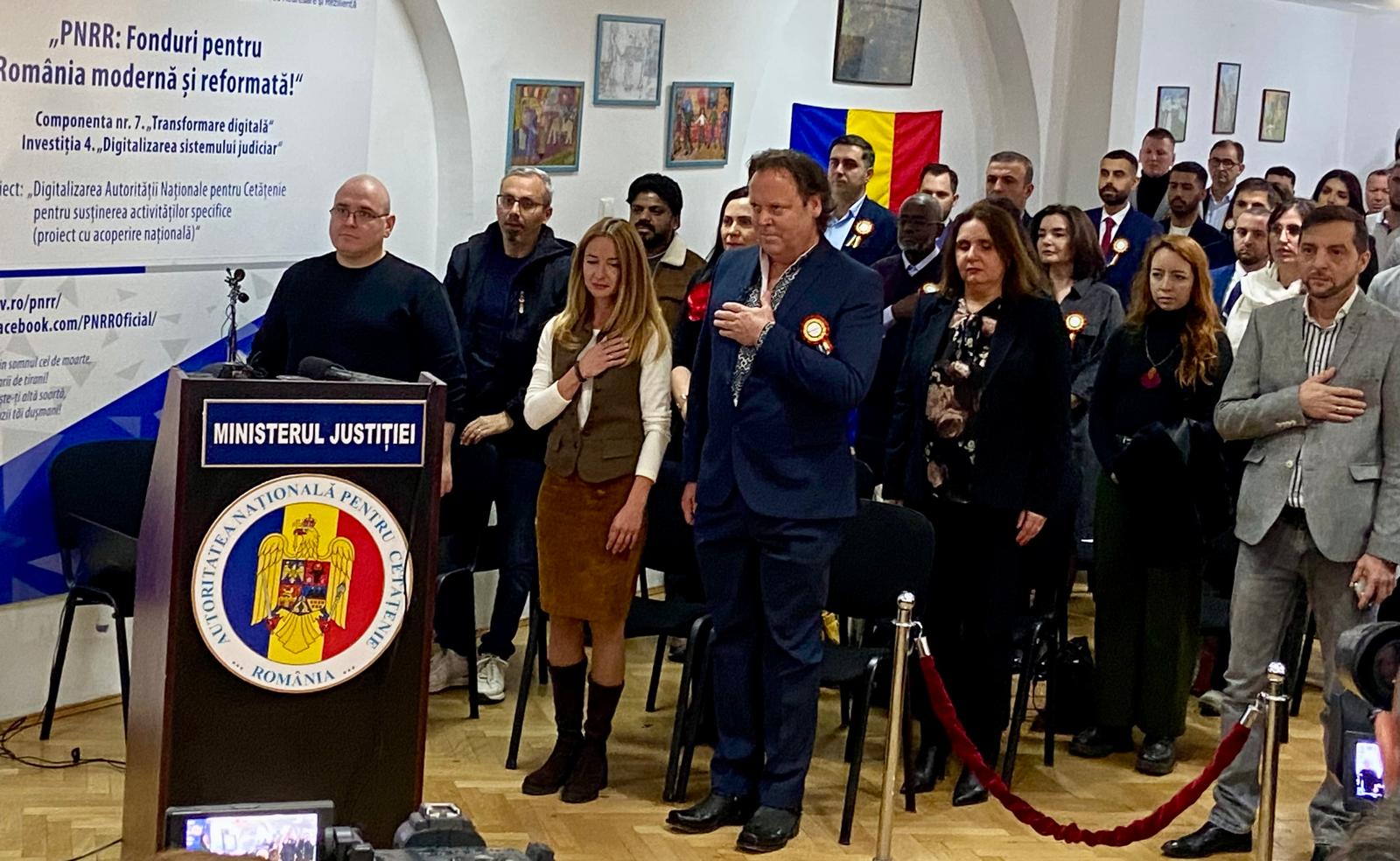 Ciprian Florescu, vicepreședintele Autorității Naționale entru Cetățenie (ANC), a fost cel care i-a înmânat certificatul.