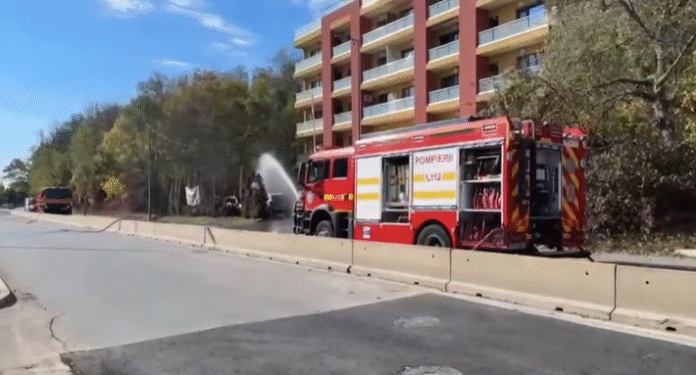 „Incendiul la cele două autoturisme a fost stins. În acest moment asigurăm măsuri specifice de prevenire şi protecţie ca urmare a fisurării acestei conducte de gaze, ţinând cont ca este în apropierea unei construcţii P+5 (hotel), de unde am evacuat 40 de persoane”; informează ISU Bucureşti Ilfov.