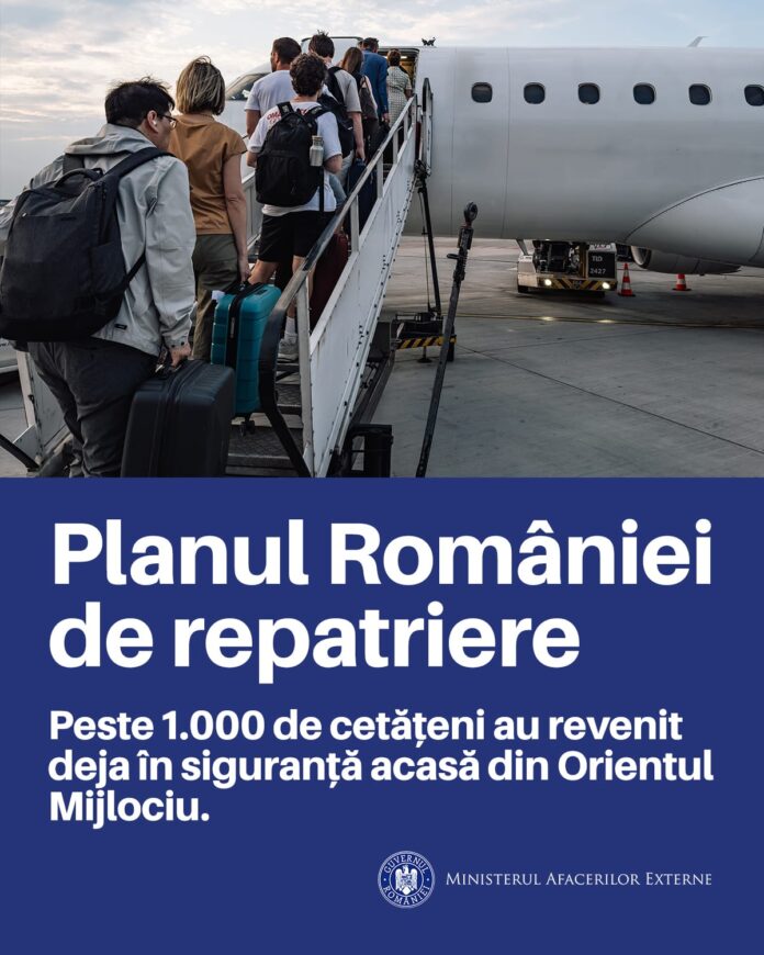 ”Celula de Criză şi echipele consulare ale MAE din regiune continuă eforturile pentru repatrieri şi evacuări şi au în atenţie categoriile prioritare: copii, persoane cu urgenţe medicale, femei însărcinate şi familii cu copii mici. Celula de Criză a MAE, prin intermediul misiunilor diplomatice şi al oficiilor consulare ale României din regiune, menţine contactul cu cetăţenii români afectaţi de conflictul din Orientul Mijlociu, precum şi cu autorităţile statelor din regiune, şi va continua să acorde asistenţă şi protecţie consulară, cu prioritizarea siguranţei cetăţenilor români, în funcţie de evoluţia situaţiei de securitate”, transmite MAE.